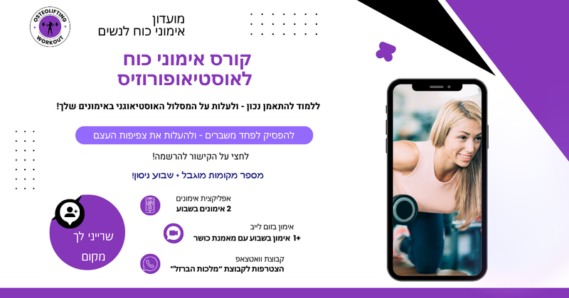 הגעת למקום הנכון! המומחיות שלנו היא לחזק את העצמות ולהעלות את צפיפות העצם, בשיטת אימון טבעית, בטוחה, מבוססת מחקר ומומלצת על ידי בעלי מקצוע. אנו עוזרים לנשים רבות שכבר ראו תוצאות מדהימות והעלו את צפיפות העצם שלהן.